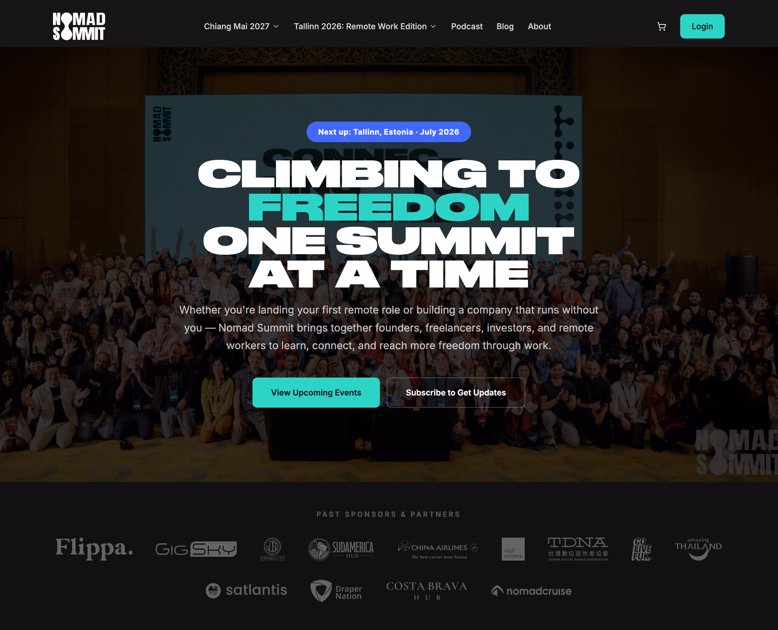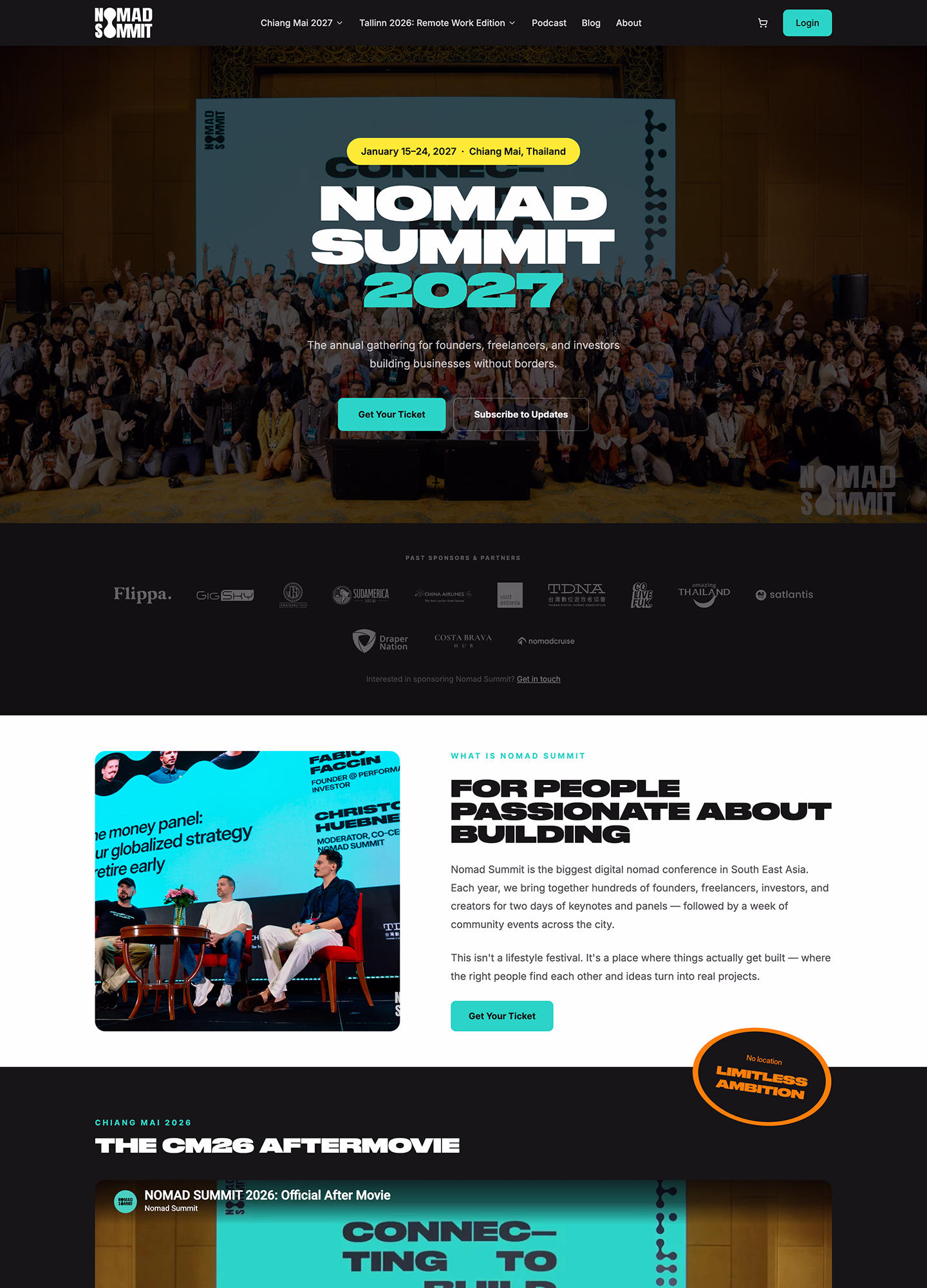 Nomad Summit runs its entire business through its website — ticket sales, event bookings, SEO. No Eventbrite, no fallback.
