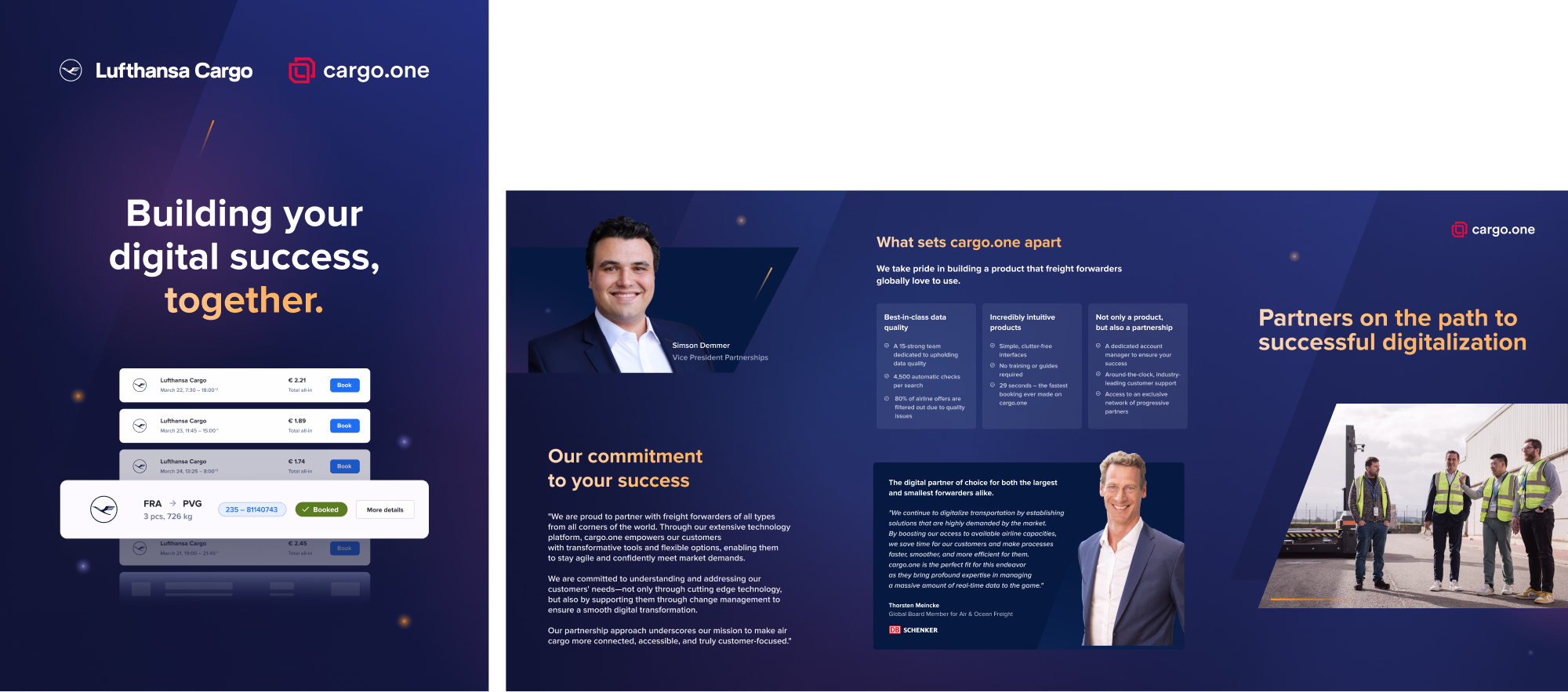 cargo.one had the product, the traction, and the ambition. Over two years, we systematically elevated their visual identity — shifting from broad industry visibility to a premium look built to attract the world’s top freight forwarders.